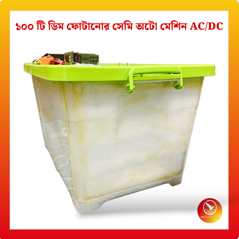 ১০০ ডিমের ইনকিউবেটর মেশিন হলো একটি আধুনিক ডিম ফোটানোর যন্ত্র, যা ১০০% সফলভাবে বাচ্চা ফোটাতে সক্ষম। মেশিনটিতে স্বয়ংক্রিয় টেম্পারেচার কন্ট্রোল, আর্দ্রতা নিয়ন্ত্রণ ব্যবস্থা এবং বিদ্যুৎ সাশ্রয়ী হিটিং সিস্টেম রয়েছে।