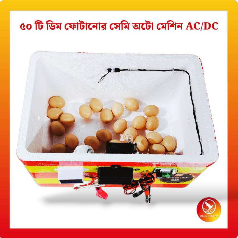 ৫০ ডিমের ইনকিউবেটর মেশিন হলো একটি আধুনিক ডিম ফোটানোর যন্ত্র, যা ১০০% সফলভাবে বাচ্চা ফোটাতে সক্ষম। মেশিনটিতে স্বয়ংক্রিয় টেম্পারেচার কন্ট্রোল, আর্দ্রতা নিয়ন্ত্রণ ব্যবস্থা এবং বিদ্যুৎ সাশ্রয়ী হিটিং সিস্টেম রয়েছে।
