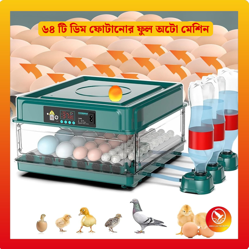 এই অটোমেটিক ইনকিউবেটর মেশিনটি ডিম থেকে বাচ্চা ফোটানোর জন্য আধুনিক প্রযুক্তিতে তৈরি। এতে রয়েছে অটো টেম্পারেচার কন্ট্রোল, হিউমিডিটি সেন্সর এবং অটো ট্রেনিং সিস্টেম, যা সম্পূর্ণ প্রক্রিয়াকে করে আরও সহজ ও নির্ভুল